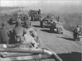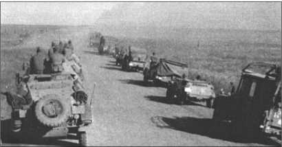 Бесконечные колонны 13-й танковой дивизии едут по пыльным дорогам в направлении Кавказа.
