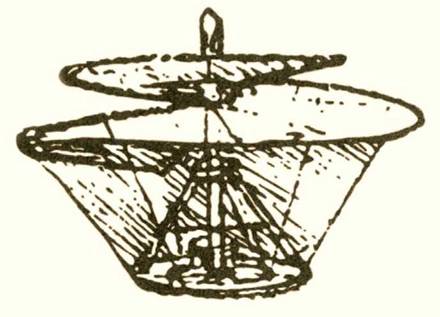 «Наружный край винта должен быть из проволоки толщиной в веревку, и от окружности до середины должно быть восемь локтей. Я говорю, что когда прибор этот сделан хорошо, то есть из полотна, поры которого прокрахмалены, и быстро приводится во вращение, то названный винт ввинчивается в воздух и поднимается вверх…».