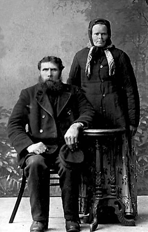 Сохранилось несколько фотографий начала прошлого века. Вот предки по отцовской линии – Афанасий Калинович и Мария Николаевна Бурковы. По воспоминаниям современников, в конце XIX – начале XX века Афанасий Калинович считался одним из лучших мастеров-корабелов в Патракеевке. Он спроектировал и построил не один десяток шхун и других парусных судов, причем материал выбирал и доставлял из леса сам. До сих пор сохранились серебряные рюмки, полученные им от заказчиков за хорошо сработанные суда. Умер Афанасий Калинович в 1926 у себя на родине.