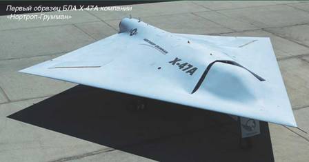 В рамках работ по созданию боевого БЛА для американского флота, проводимых Агентством DARPA совместно с ВМС США, компанией «Нортроп-Грумман» был построен и испытан один экспериментальный беспилотный аппарат X-47A. Официальный контракт фирме-разработчику был выдан 30 июня 2000 г., а уже через год, 30 июля 2001 г., завершилась постройка и проведена выкатка опытного Х-47А. Серия наземных испытаний и доводок продолжалась полтора года, и 23 февраля 2003 г. Х-47А впервые поднялся в воздух.