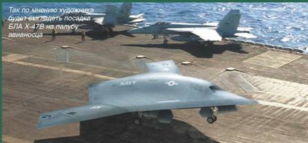 Наконец, 3 августа этого года «Нортроп-Грумман» официально объявила о получении шестилетнего контракта стоимостью 635,8 млн долл. на постройку и проведение испытаний на авианосце ВМС США двух опытных ББЛА Х-47В по новой программе UCAS-D (Unmanned Combat Air System Carrier Demonstration). Первая из этих машин должна подняться в воздух в конце 2009 г. После серии испытаний в условиях аэродромного базирования компания приступит к первым полетам Х-47В на корабле. Первая посадка ББЛА на палубу запланирована на конец 2011 г., а вся программа должна быть выполнена к 2013 г.