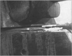 Здесь толстую броню башни КВ-1 пробили пять специальных снарядов с усиленным зарядом. Шов в броне при этом разошелся. У КВ-1 сзади был еще один пулемет в шаровой установке для ближней обороны.