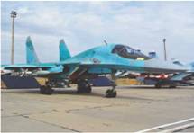Двухместный сверхзвуковой многофукциональный фронтовой боевой самолет с двумя двигателями АЛ-31Ф тягой 12 500 кгс, глубокая модификация истребителя Су-27 со значительно измененной конструкцией планера, увеличенным запасом топлива, новым комплексом бортового оборудования, широкой номенклатурой вооружения классов «воздух-воздух» и «воздух- поверхность». Первый полет прототипа выполнен 13 апреля 1990 г. Выпускается на НАПО им. В.П. Чкалова, где в 1993- 2004 гг. построен второй опытный, а затем четыре летных экземпляра установочной партии, а с 2005 г. ведется серийное производство. Облет головного серийного Су-34 выполнен 12 октября 2006 г. В 2006 г. первые два серийных самолета переданы ВВС России. Су-34 должен заменить Су-24М в частях фронтовой авиации ВВС России, на экспорт предлагается в вариантах морского патрульно-ударного самолета и многофункционального фронтового самолета под обозначением Су-32.