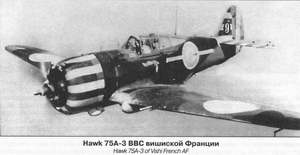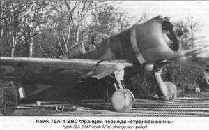 В период «странной войны» летчики Hawk 75 проявили себя очень хорошо, записав на свой счет 40 вражеских самолетов из 70, сбитых за это время французскими истребителями. К началу германского наступления (10 мая 1940 г) у французов в строю насчитывалось 124 «Кертисса», в т. ч. 97 исправных. В ходе боев с люфтваффе летчики «Хоков» сбили примерно 230 самолетов, потеряв при этом всего 29 машин. Многие добились звания асов. Наиболее результативными были л-т Э. Марэн-ля-Месле (20 побед), к-ны М. Доранс (14) и Ж. Аккар, а также су-лейтенант К. Плюбо (по 12). (По французской системе подсчета летчику засчитывались как личные, так и групповые победы). Во французских авиагруппах сражались и чешские пилоты, за которыми числятся 54 достоверные победы, из них 12 – на счету к-на А. Ва-шатко и 11 – л-та Ф. Пержина. В составе отдельных звеньев по обороне промпрдд-приятий на Hawk 75 воевали польские летчики, одержавшие 4 победы.
