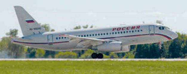 В рамках контракта, заключенного 8 декабря 2014 г. между ОАК и Управлением делами Президента России, два SSJ100 в специальном 59-местном варианте до конца нынешнего года поступят в СЛО «Россия». Их компоновка предусматривает наличие трех салонов: VIP-класса с двумя креслами, бизнес-класса на 12 мест и «эконом» на 45 кресел. Самолетами «президентского» авиаотряда станут два «суперджета», первоначально строившиеся для лаосской авиакомпании Lao Central (№95030, 95037). Первый из них взлетел в Комсомольске- на-Амуре 20 мая 2013 г. и к августу был готов к поставке в Лаос (к тому времени он уже прошел окраску в цвета перевозчика и получил бортовой номер RDPL-34196). Второй (RDPL-34197 во временной белой окраске) поднялся в воздух 26 сентября 2013 г. Однако в связи с ухудшением финансового состояния авиакомпании, заставившего ее в конце декабря 2013 г. остановить операционную деятельность и полеты на первом полученном в феврале 2013-го «суперджете» (№95026, RDPL-34195), от поставки двух следующих лайнеров в Лаос пришлось отказаться. Более года машины оставались на хранении в Жуковском, пока на них не нашелся новый заказчик. В апреле—мае этого года они прошли в Ульяновске окраску в ливрею СЛО «Россия», получив российские регистрационные номера RA-89039 и RA-89040, после чего снова вернулись в Жуковский, где будет выполнено переоборудование их салонов и дооснащение необходимым оборудованием. В эксплуатацию самолеты должны поступить до конца 2015 г.