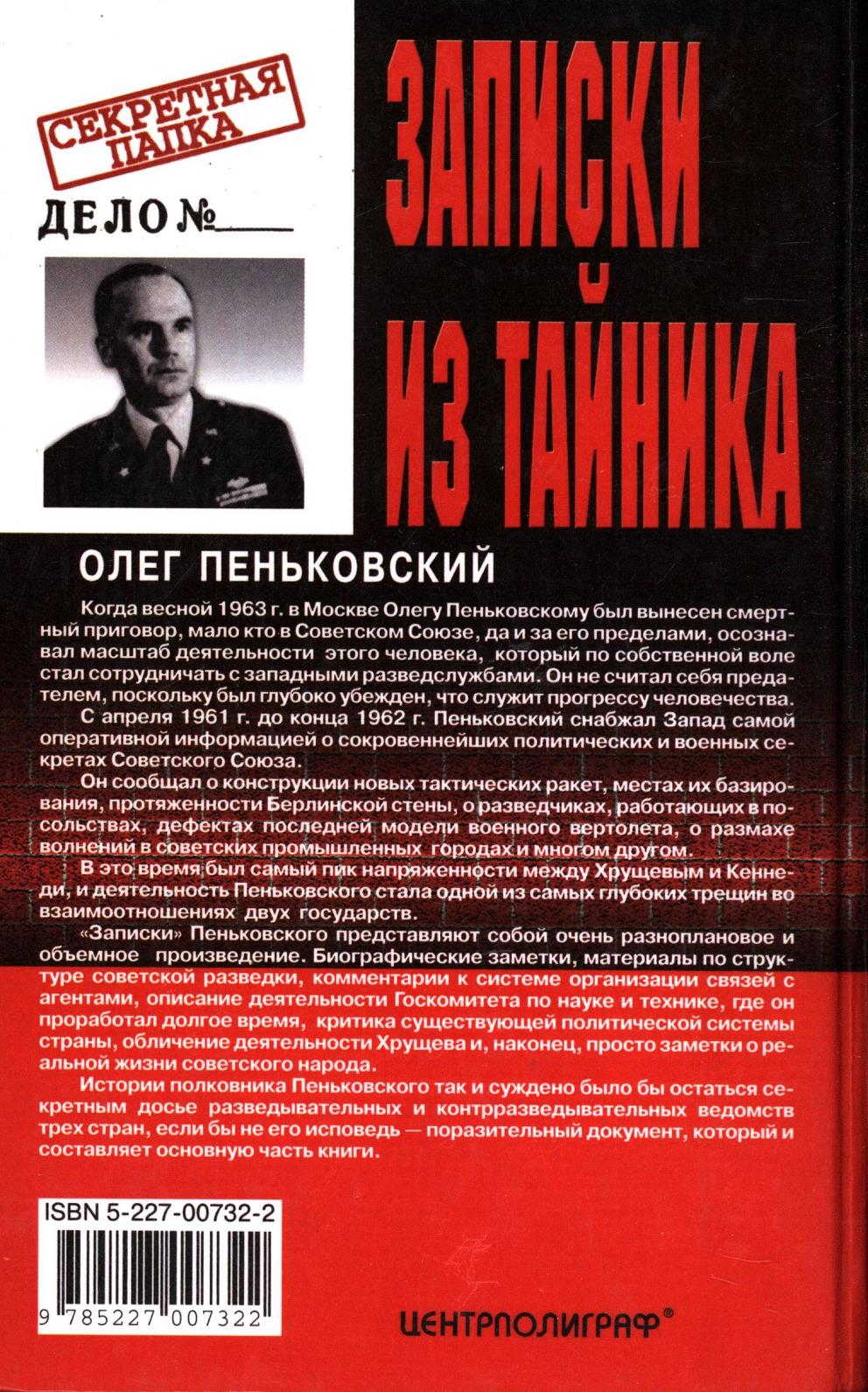 «По окончании суда у некоторых наших граждан сложилось впечатление, будто Пеньковский передал врагу почти все секреты, касающиеся нашей военной техники и обороноспособности Советского Союза. Однако оснований для подобных опасений нет. Пеньковский по своему служебному положению был слишком далек от информации, касающейся вооружения наших войск, мест их дислокации и новых видов вооружения. Иностранным спецслужбам он сумел передать лишь некоторые отчеты наших технических специалистов, выезжавших за рубеж, разрозненные данные военного характера, которые ему удалось выведать у своих болтливых друзей и почерпнуть из засекреченных изданий. И еще он посылал на Запад информацию о внутриполитическом положении страны».