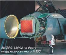 AN/APG-63(V)2/3. Помимо создания принципиально новой РЛС AN/APG-79 компания «Рейтеон» ведет работы по оснащению АФАР применяемого на истребителях F-15C/D радара AN/APG-63(V)1, ранее имевшего щелевую антенну. Первая модификация этой РЛС с новым типом антенны, контракт на разработку которой был выдан в 1999 г., получила название AN/APG-63(V)2 и оснащалась АФАР квадратной формы. Такими радарами уже оснащены 18 истребителей F-15C одной эскадрильи ВВС США, базирующейся на Аляске (авиабаза «Элмендорф»), что значительно повысило их боевые возможности и полностью реализовало преимущества применения ракет AIM-120 (наведение нескольких ракет на несколько целей в различных точках воздушного пространства). Самолеты находятся на боевом дежурстве с декабря 2000 г., став первыми в мире строевыми истребителями с АФАР.