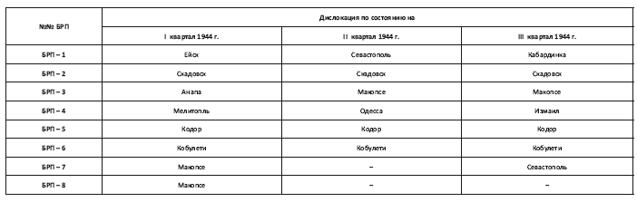 Дислокация береговых радиопеленгаторных пунктов БРО Черноморского флота в 1944 г.