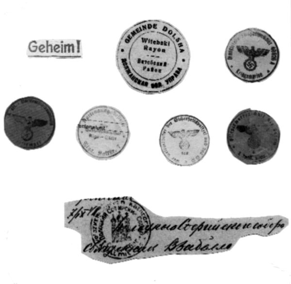 Образцы печатей оккупационной администрации, немецких разведывательно-диверсионных органов, доставленные советским разведчиком «Северовым»