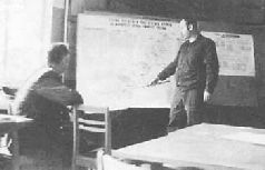Командир оперативной группы 39-го ОРАП п/п-к А.Н.Барсуков и штатный руководитель полетов п/п-к А.Г.Кутарев обсуждают схему перелета группы по маршруту Мары-Чимкент-Балхаш. Аэродром Мары-2, 10 апреля 1980 г.