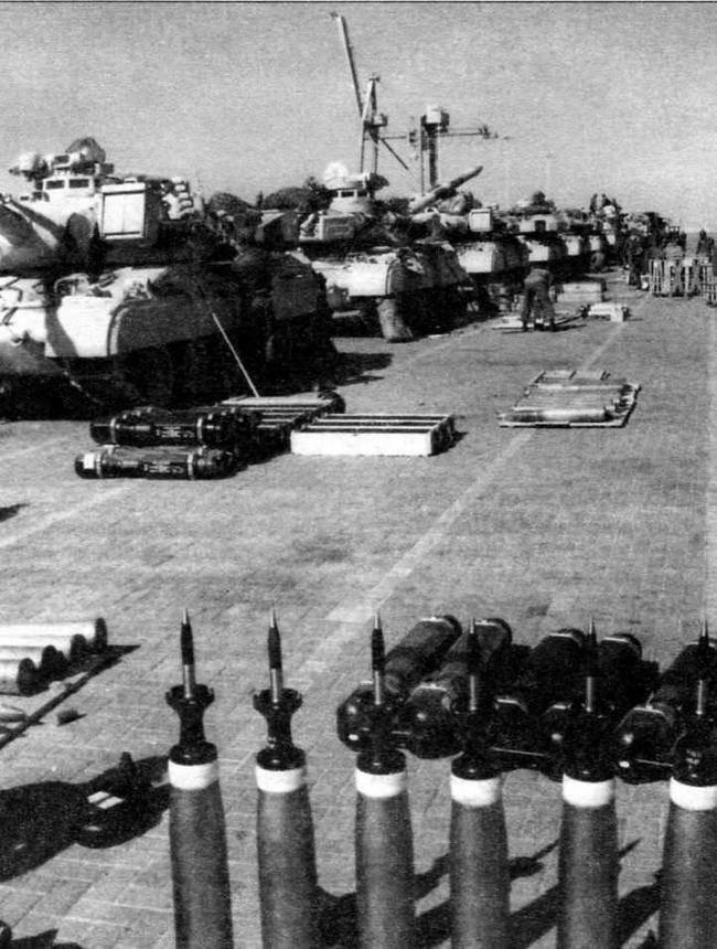 Боевые машины, снаряжение и боеприпасы 4-го драгунского полка после разгрузки в порту Янбу. Саудовская Аравия, 1991 год
