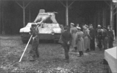 Генерал-полковник Гудериан осматривает в июне 1944 года в Ордруфе новый «Тигр II» 503-го тяжелого танкового батальона. Здесь происходит чистка ствола орудия.