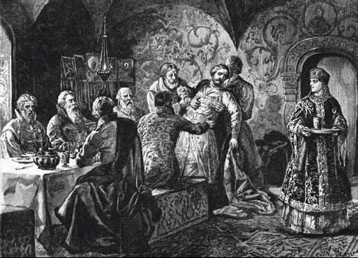 А кто тебя на пиру честно упоил честныим питием и с того тебе пития на век будет не проспатися, и колко я тебе чадо во Александрови слободи приказывала не ездить во град Москву, что лихи в Москве звери лютые, а пышат ядом змииным.