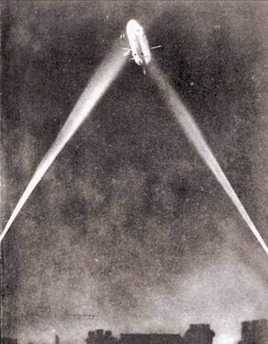 Англичане также сами демаскируют Лондон. Они начинают нервничать при налете. Включают прожектора, начинают шарить их лучами в воздухе. Частенько видны пучки прожекторных лучей, поднимающихся перпендикулярно ввысь неба. Такой ориентир заметен издалека в самую темную ночь.