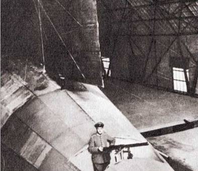Вид на переднюю командно-моторную гондолу дирижабля Цеппелин L-71