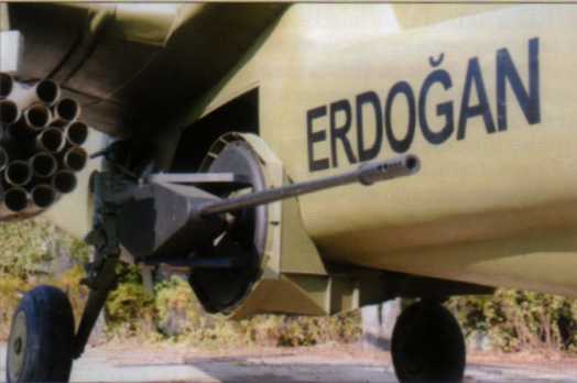 Пушку решили установить, как требовали турки, под фюзеляжем, обеспечив ей круговой обстрел. Начальник бригады вооружения Геннадий Данилочкин решил сложную задачу – 20- мм пушка французского производства разместилась на откидной платформе. При взлете и посадке орудие «складывалось» и размещалось на привычном правом борту. При выполнении боевого задания пушка опускалась вниз и могла вращаться хоть на 360'. Кстати, такое же решение было предложено и южнокорейцам, но это другая тема.
