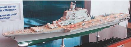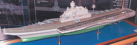 Вверху: модель модернизированного авианосца «Адмирал Горшков», доработанного в носитель истребителей МиГ-29К