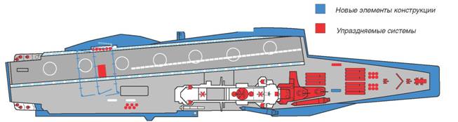 Полное водоизмещение модернизированного авианосца составит около 45 000 т, а скорость хода корабля достигнет 27 узлов.
