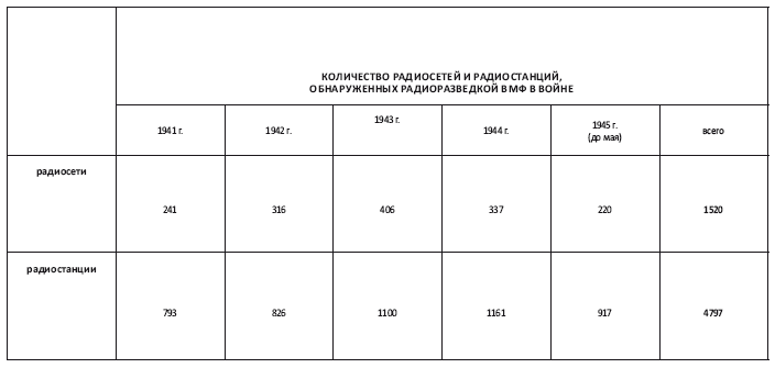 Результаты боевого применения береговых частей радиоразведки советского ВМФ в Великой Отечественной войне 1941–1945 гг.