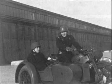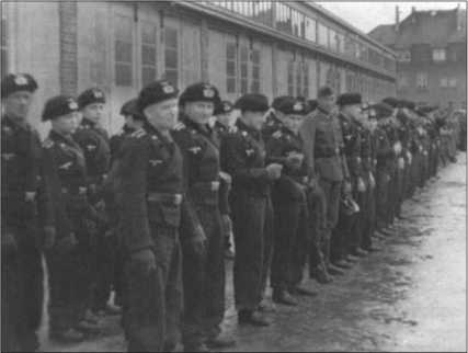 9-я рота построена для получения приказа — в черной униформе боевые подразделения, в серой полевой форме мотоциклисты, которых также называли «обозные кнехты». Без обозных кнехтов ни о каких танках-шманках не могло быть и речи.