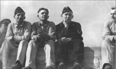 Альфред Руббель в черной танковой униформе с товарищами в качестве зрителей на спортивном мероприятии в Шпроттау весной 1941 года. Слева возле Руббеля сидит товарищ Штокманн из Вюрцбурга. Из товарищей, бывших в январе 1940 года, в живых остались только Берман, Вегман и Руббель. Новые солдаты сразу же становились друзьями.