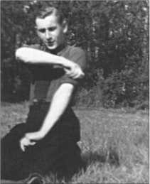 Альфред Руббель залезает на учебный Танк I у казармы в Шпроттау в ноябре 1940 года. Слева на фотографии его товарищ Вегман.