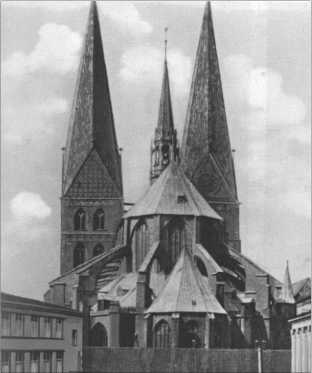 На этой фотографии собор в Любеке, он еще не разрушен. Он был сильно поврежден во время бомбардировок союзников.