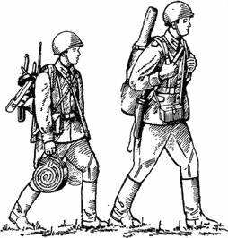 Рис. 44. Переноска гранатомета в разобранном виде: