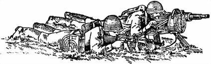 — помощник наводчика левой (правой) рукой берется за переднюю ногу у сошника, а другой рукой переносит коробку с выстрелами;