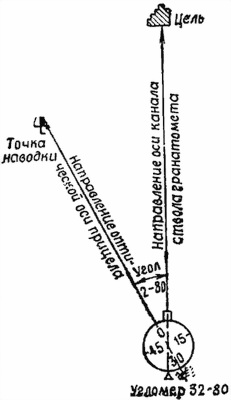 Рис. 47. Предание гранатомету основного направления (наводка в цель) по углу между основным направлением и видимым в прицел местным предметом