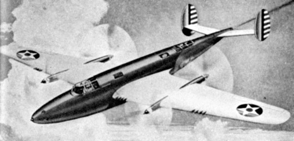 В этом проекте самые новейшие достижения конструкторской мысли. Тянущие и толкающие воздушные винты на крыльях с гидравлическим или механическим приводом от двигателей в фюзеляже, хотя автор уже замечает, что воздушные винты могут быть заменены «новыми многообещающими устройствами», имея в виду реактивные двигатели. Убираемые пушечные турели сверху и снизу хвостовой части фюзеляжа, управляемые воздушными стрелками. Множество стволов пушечного вооружения в крыльях и в носу фюзеляжа. В последнем также предусмотрены пусковые установки ракет типа «воздух – воздух».