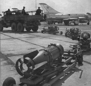 Еще один прием – бомбометание с горизонтального полета или с пикирования на высотах 4000-8000 м, широко используемое на Западе для сокращения потерь от маловысотных зенитных средств, не нашел применения на Су-7Б в связи с отсутствием на его борту соответствующего прицельного оборудования и вооружения, невысокой точности и повышенного расхода боеприпасов при таких ударах (оперировать десятками и сотнями тысяч тонн бомб и самолето-вылетов, подобно американцам во Вьетнаме, при наших масштабах боевой подготовки представлялось нереальным).