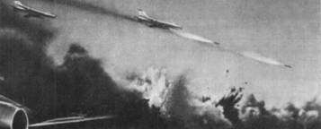 "Каждую бомбу, ракету, снаряд – в цель". Впечатляющий снимок. Однако, он является фотомонтажом – пуск мощных ракет мог выполняться с дистанции 1500 м