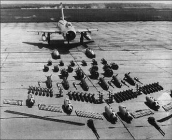 Широко стали использоваться и термостойкие авиабомбы различного назначения и калибров, что позволило значительно увеличить время полета с ними на сверхзвуковой скорости и большой высоте, сопровождавшейся кинетическим разогревом боеприпасов. Для ударов по групповым и протяженным целям истребители-бомбардировщики применяли широкую гамму разовых бомбовых кассет (РБК) калибра 250 и 500 кг, снаряжаемых различными типами осколочных, зажигательных, противотанковых бомб, а позднее и мин.