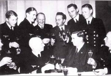 Банкет по поводу сдачи кригсмарине подлодки U 794. После доклада Гельмута Вальтера все поднимают бокалы за успех его подлодки.