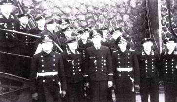Экипаж подлодки U 792 в день её сдачи кригсмарине 16 ноября 1943 г. В середине первого ряда стоит командир подлодки лейтенант Хорст Хайтц, справа от него инженер-лейтенант Краге, крайний слева – приглашенный оберлейтенант Бремен.
