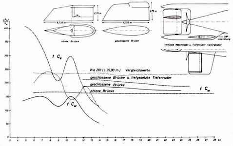 Результаты буксировочных испытаний подлодки WK 202. Благодаря установленному стабилизатору при скорости 24 узла эффективность рулей возросла па 7,5%. Такое расположение рулевого устройства было применено позже на подлодках серий XXII, XXIII и XXVI.