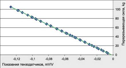 Рис. 2. Зависимость перерезывающей сипы от показаний тензомоста
