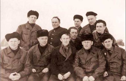 Коллектив СП-5. В.П. Колошенко второй слева в первом ряду