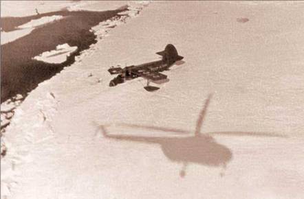 Вертолет поднят в небо. Низкое, маленькое, ослепительно яркое полярное солнце рельефно высвечивает все неровности льдов. Вскоре мы увидели среди торосов занесенный снегом самолет с поломанными крыльями и шасси. Садимся. Кронштейн элерона при аварии Ан-2, к счастью, не пострадал. Бортмеханик его снял, и мы возвратились на станцию. Вскоре Каминский на своем самолете улетел на остров Средний.