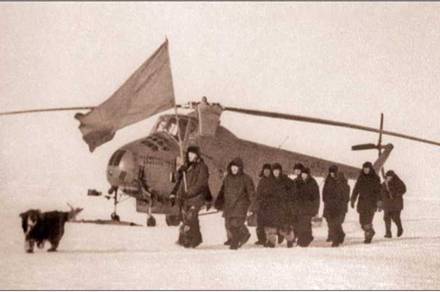 Начальник «СП-5» Анатолий Леонтьевич Соколов поздравляет нас с прибытием, знакомит с участниками зимовки, которые прилетели сюда из Ленинграда на самолете Полярной авиации. Весь коллектив станции – шесть человек: пятеро ученых и врач (он же повар). Задача ученых – наблюдение за всем, что происходит на поверхности льдов и под ними. Задача новых членов экспедиции – экипажа вертолета – помогать в проведении научных работ, быть готовыми в случае торошения льдов перевезти всех участников станции на новое, более безопасное ледовое поле, обеспечивать прием самолетов с большой земли. Нам рассказали, что взлетно-посадочная полоса длиной около километра для приема самолетов Ил-12, Ил-14 и Ли-2 находится на расстоянии семидесяти километров от СП-5. Там всегда дежурят несколько самолетов Ан-2. Свое первое задание мы получаем от командира одного из них – прославленного полярного летчика Михаила Николаевича Каминского:
