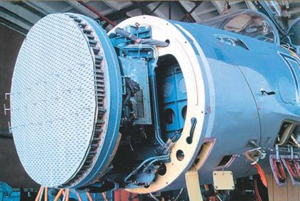 Путь первой РЛС для самолетов Су-27 на борт истребителя оказался для НИИП им. В.В. Тихомирова нелегким. В соответствии с Постановлением правительства 1976 г., радар для нового «Сухого» должен был превосходить по характеристикам РЛС AN/APG-63 американского самолета F-15A – первой в мире БРЛС импульсно-доплеровского типа с полностью цифровой обработкой информации, оснащавшейся щелевой антенной с гидроприводом и имевшей дальность обнаружения воздушных целей на встречных курсах до 80-100 км, а также возможность осуществлять сопровождение на проходе до 10 целей. Для обеспечения превосходства над ней новую РЛС, разрабатывавшуюся в НИИП для Су-27 и получившую название «Меч», решено было оснастить оригинальной фазированно-щелевой антенной, реализующей механическое сканирование в горизонтальной плоскости и электронное управление лучом в вертикальной плоскости. Электронное перемещение луча в вертикальной плоскости позволяло в режиме обзора при горизонтальном механическом сканировании практически мгновенно направлять его на ранее обнаруженные цели. Таким образом, радикально решался вопрос повышения точности прогнозирования положения цели в режиме сопровождения на проходе, что, в свою очередь, позволяло рассматривать вопрос одновременного обстрела нескольких целей с их непрерывно-дискретным подсветом, что в то время было невозможно для самолета F-15, оснащенного РЛС с чисто механическим сканированием и ракетами с полуактивными радиолокационными головками самонаведения.