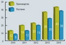 Производство и поставки новых российских пассажирских и транспортных самолетов в 2010-2014 гг.