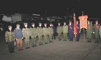 По традициям Дальней авиации, при возвращении на земле их встречал личный состав в строю при развернутых боевых знаменах.