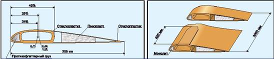 – С самого сложного – лопастей. Мы сразу решили делать их из стеклопластика. Разрабатывали всевозможные варианты. В конце концов разработали технологию, изготовили оборудование и оснастку для производства стекло пластиковых лопастей от 1 до 4 метров длиной любого профиля, с любой хордой, с вращением в любую сторону, как с линейной положительной, так и с отрицательной круткой. Все наши лопасти весят от 6 до 14 кг. Использовался профиль NACA-23012 с хордой 205 мм, наполнитель хвостовой секции лопасти – пенопласт. Противофлагтерные грузы находятся внутри лопасти вдоль передней кромки. Изготавливаются лопасти в матрице, одним технологическим приемом.