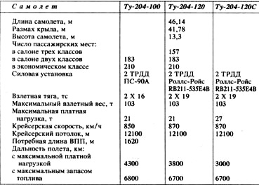 СРАВНИТЕЛЬНЫЕ ХАРАКТЕРИСТИКИ САМОЛЕТОВ СЕМЕЙСТВА ТУ-204