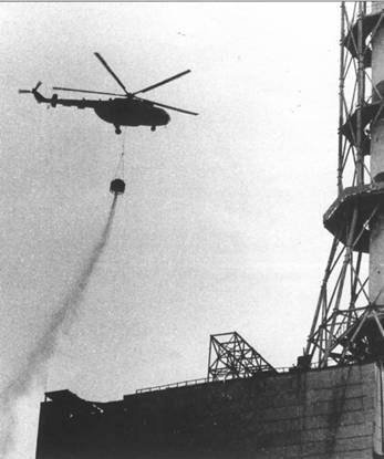 Во время проведения работ по дезактивации с помощью специально оборудованных Ми-26 распыляли спецрастворы над местностью вокруг ЧАЭС