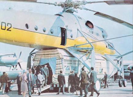 Впервые Советский Союз представил свою авиационную технику на авиасалоне в Ле Бурже в 1965 г. Вертолеты Ми-б, Ми-10, Ми-8 имели здесь огромный успех. Сам их перелет во Францию дальностью 7000 км по маршруту Москва – Варшава – Берлин – Копенгаген – Брюссель – Париж уже был рекордным.