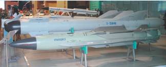 Еще одной новинкой стала авиационная ракета класса «воздух- РЛС» Х-58УШКЭ (на фото справа). В отличие от известного базового варианта Х-58УШЭ с широкополосной пассивной головкой самонаведения она оснащается складным крылом измененной конфигурации, что позволяет размещать ракету во внутренних отсеках вооружения перспективных боевых самолетов.
