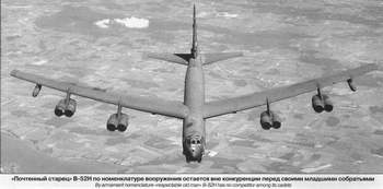 Основным носителем стратегического ядерного оружия в ВВС США остается ветеран В-52. Созданный еще в 1952 г., этот самолет находился в серийном производстве до 1962 г. Вариант В-52Н, состоящий на вооружении в настоящее время (102 самолета этого типа были поставлены в 1961-62 гг.), последовательно оснащался свободнопадающими термоядерными бомбами, сверхзвуковыми крылатыми ракетами «Хаунд Дог», аэробаллистическими ракетами SRAM, крылатыми ракетами ALCM и АСМ. Несмотря на солидный возраст, а срок службы самого «молодого» В-52Н превысил 38 лет, министерство обороны и командование ВВС США считают целесообразным сохранять эти машины в строю до 2030-40-х гг В течение ближайших 30 лет В-52Н останется универсальным «пеналом» для размещения различных средств поражения. Он по-прежнему будет нести малозаметные стратегические крылатые ракеты (КР) типа AGM-129A, и его потенциал по доставке неядерных средств поражения планируется последовательно расширять. Появление новых высокоточных КР, способных избирательно поражать самые малоразмерные цели (конкретные части зданий, капониры, мосты, радио- и телевизионные вышки и т. п.), создало новую ситуацию, при которой бомбардировщики, оснащенные ракетами с неядерным снаряжением, могут решать стратегические задачи по подавлению экономического потенциала противника и выведению из строя инфраструктуры государственного управления, ранее считавшиеся доступными только атомному оружию. Пример довольно успешного решения подобных задач был продемонстрирован стратегической авиацией США в Югославии в 1999 г.